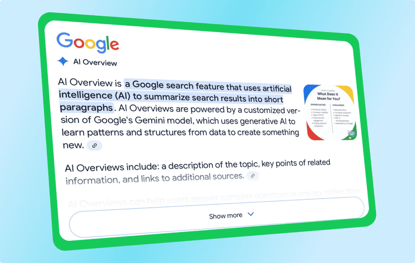 The ultimate goal now is visibility within the AI Overview's citation links. Here’s how to get into google ai overview: